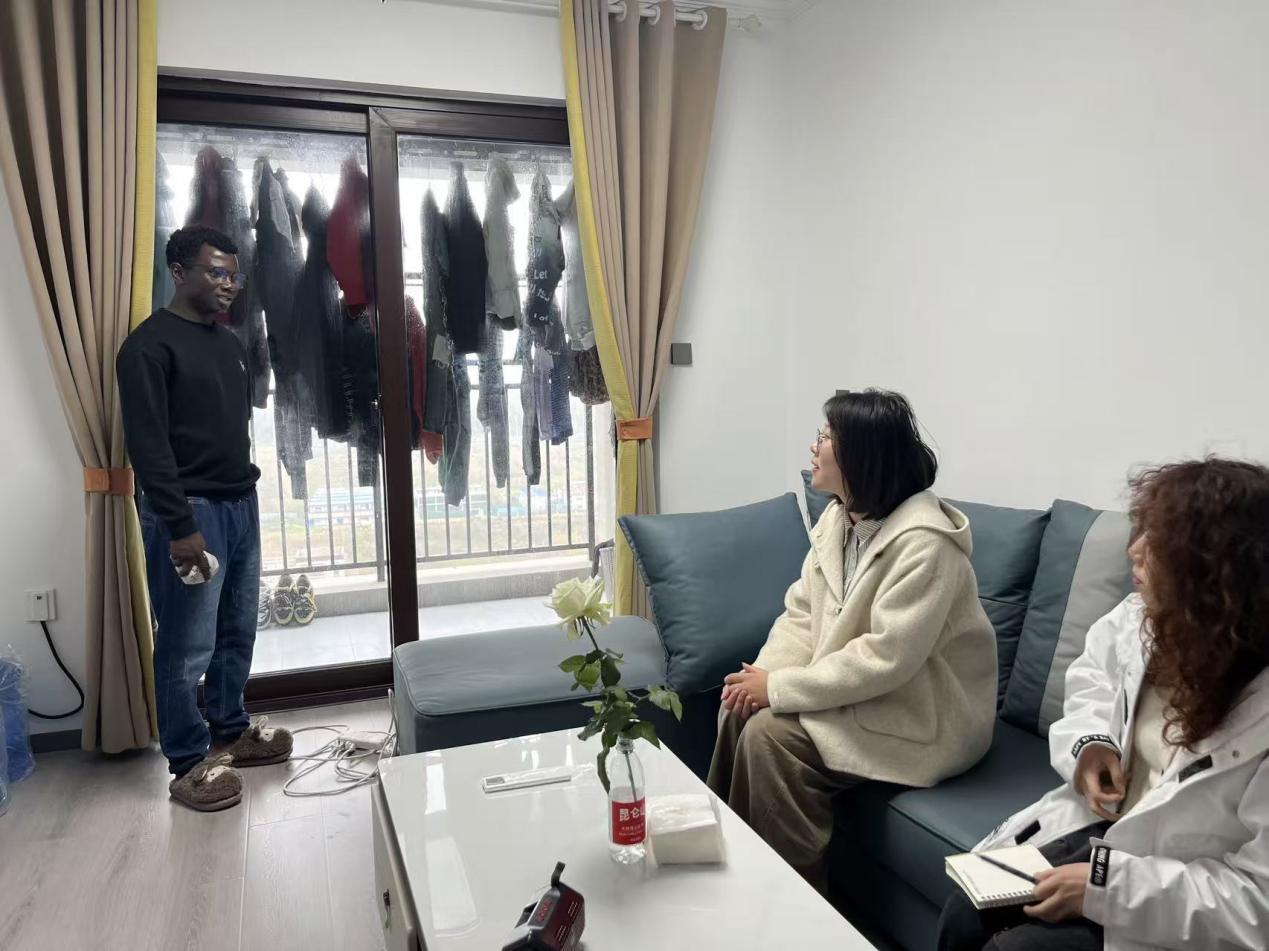 On March 26, Zhu Yajie and Wu Yuehan, counselors of the office of international student affairs, paid a visit to students living off campus.